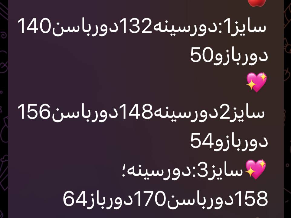 ❤️سایز3دورسینه140دورباسن150دوربازو70